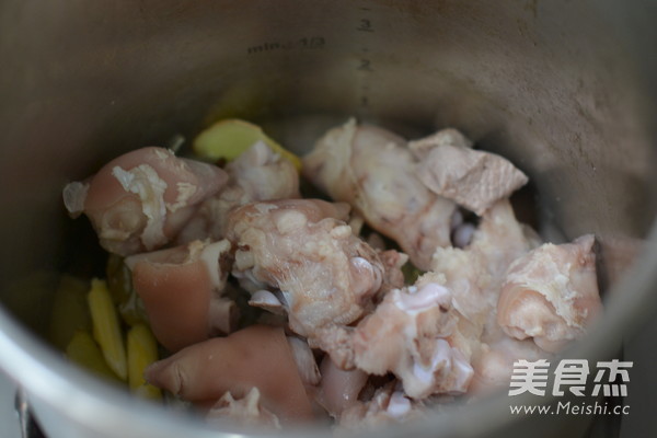 這時候倒入火開大,焯過水洗干凈的豬蹄