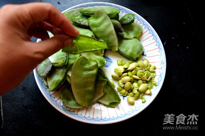 將豆角在較厚的一頭掰開,取出所有的豆子。