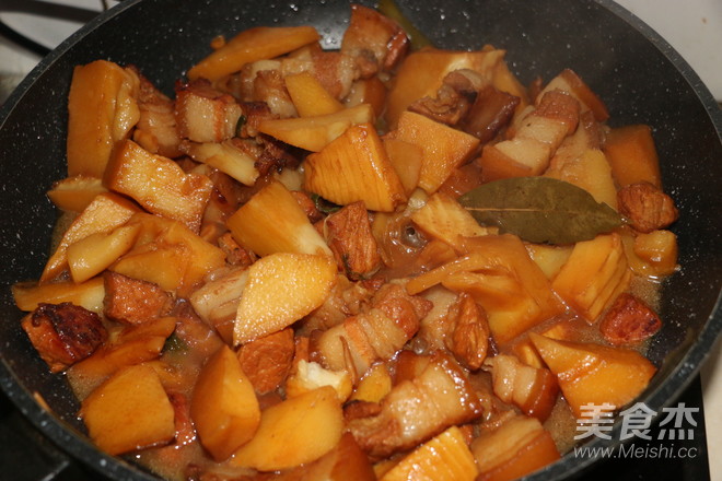 13.大火燒開(kāi),小火慢燉40分鐘,豬肉軟爛后,大火收汁。