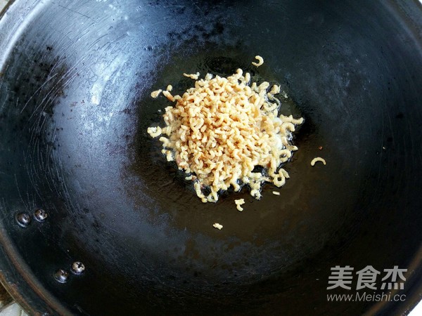 8.加入泡好的海米炒至金黃色。