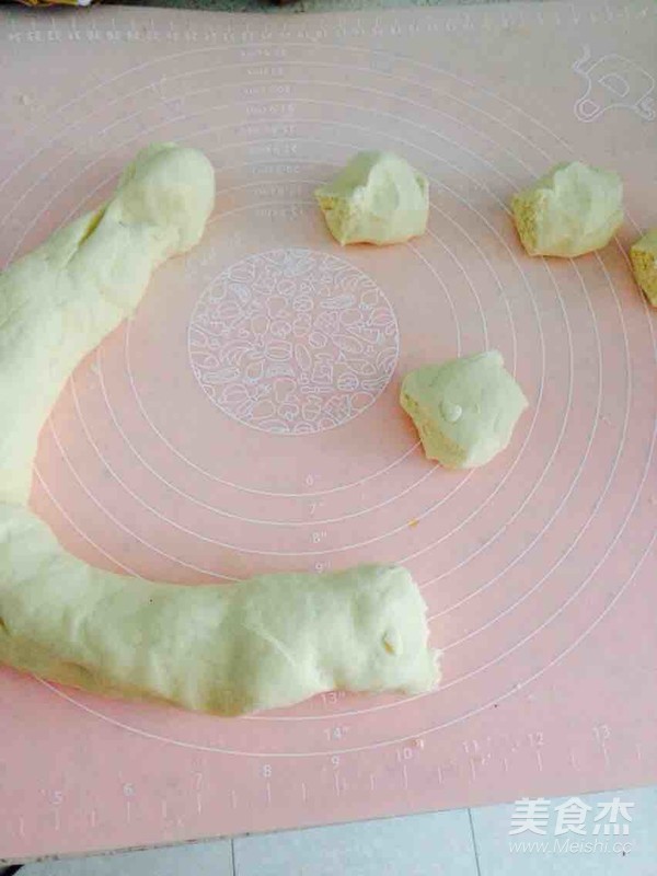 取出發酵好的面團,揉搓排氣,分成若干個小劑子