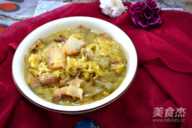 2.白肉是必備的,和酸菜一起燉,肥而不膩,大燉菜燉的時間越長,味道越鮮美。