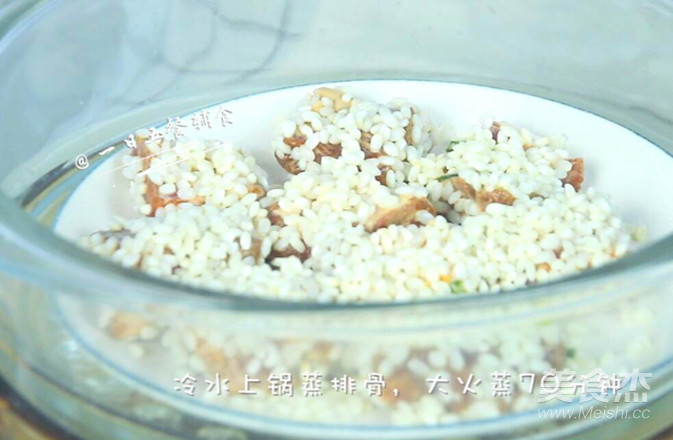 6. 最后在排骨上再撒一層糯米覆蓋住排骨,糯米吸進(jìn)了排骨的香味和肉味,比肉還好吃,而且多一點(diǎn)糯米也能解解膩。