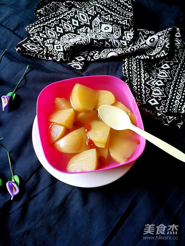 煲20分鐘后蘋果已經(jīng)煮熟加入冰糖融合在煲10分鐘即可