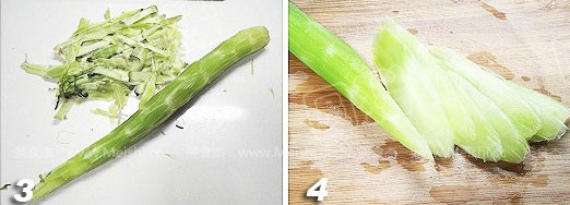 2.再將尾部細嫩的皮削干凈,只留下內部青綠色的莖
