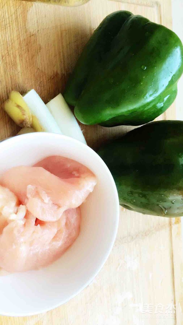 雞胸肉,甜椒,洗凈備用。我準(zhǔn)備了三塊雞小胸,一個(gè)甜椒,甜椒沒用完,成品是三個(gè)甜椒圈,一人份。人多請(qǐng)加量。