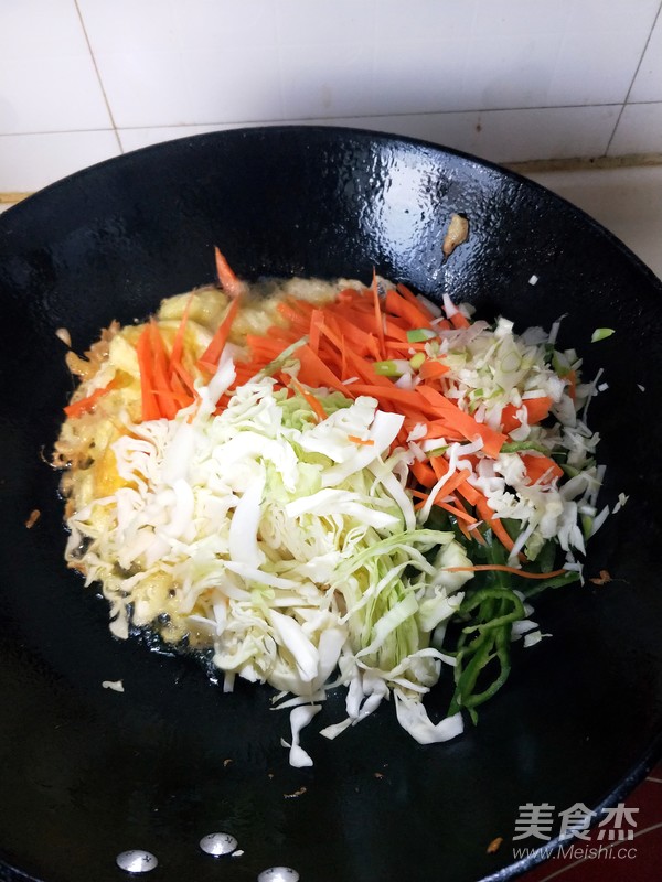4.姜紅蘿卜,青椒,包菜,蔥切絲