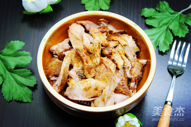 手撕好兔肉,把烤盤上汁倒入拌均即可。