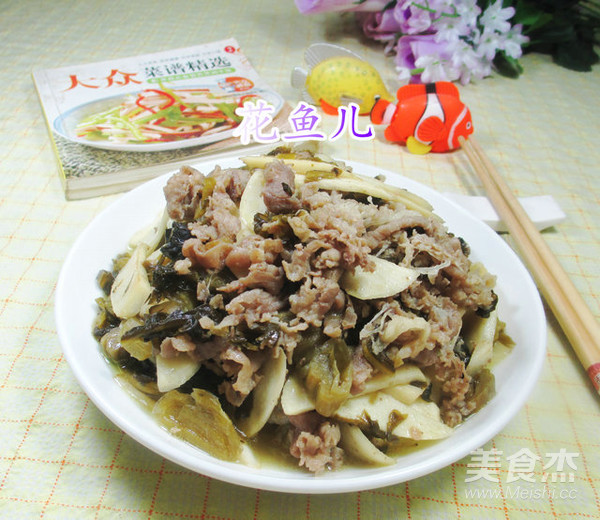 材料:茭白、酸菜(已切碎)、肥牛片