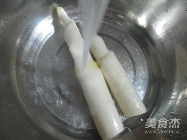 將茭白剝殼清洗一下。