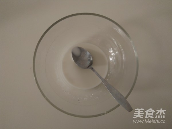 放入盛放水淀粉的碗里,加入料酒拌勻,腌漬15分鐘。