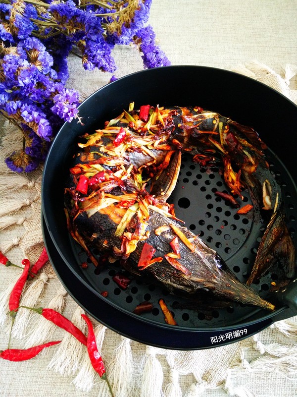 廚具:空氣炸鍋。。辣椒和麻辣醬可隨個人口味適當添加。鱘魚提前腌制一晚,第二天烘烤會更入味哦。雞翅模式不僅可以烤雞翅也可以烤魚類哦,零廚藝也可以做出好美味!